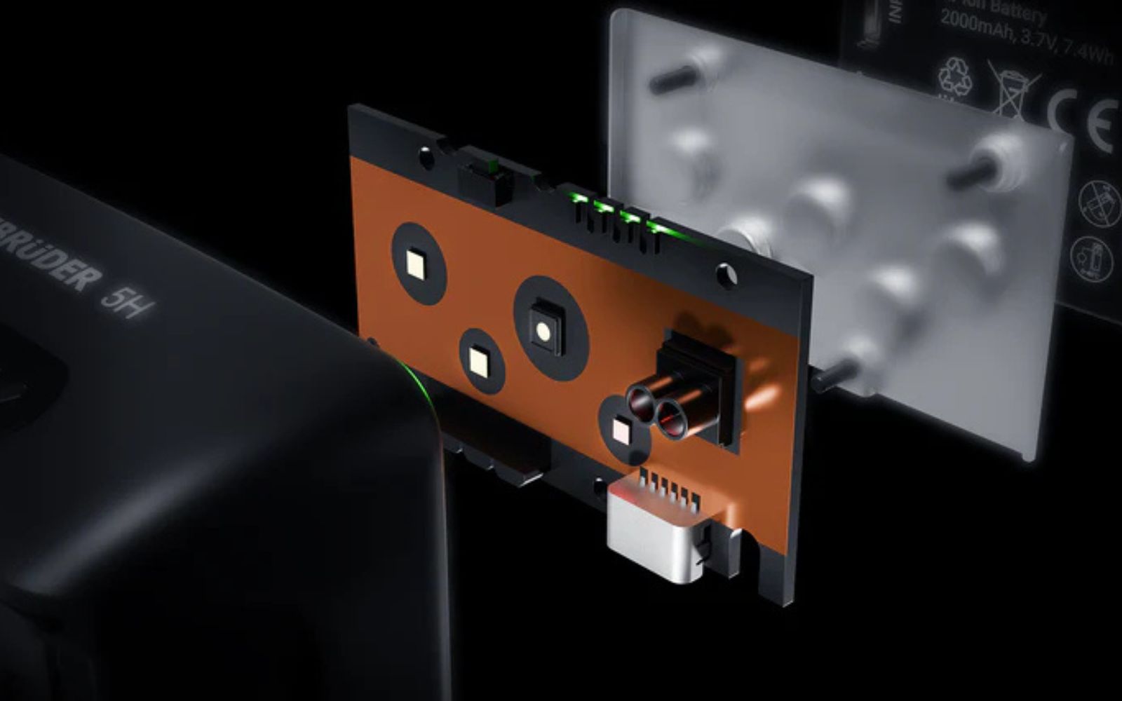 La puissante batterie lithium-polymère fournit beaucoup d'énergie tout en étant compacte et légère. La batterie amovible peut être rechargée dans la lampe ou à l'extérieur via USB-C.