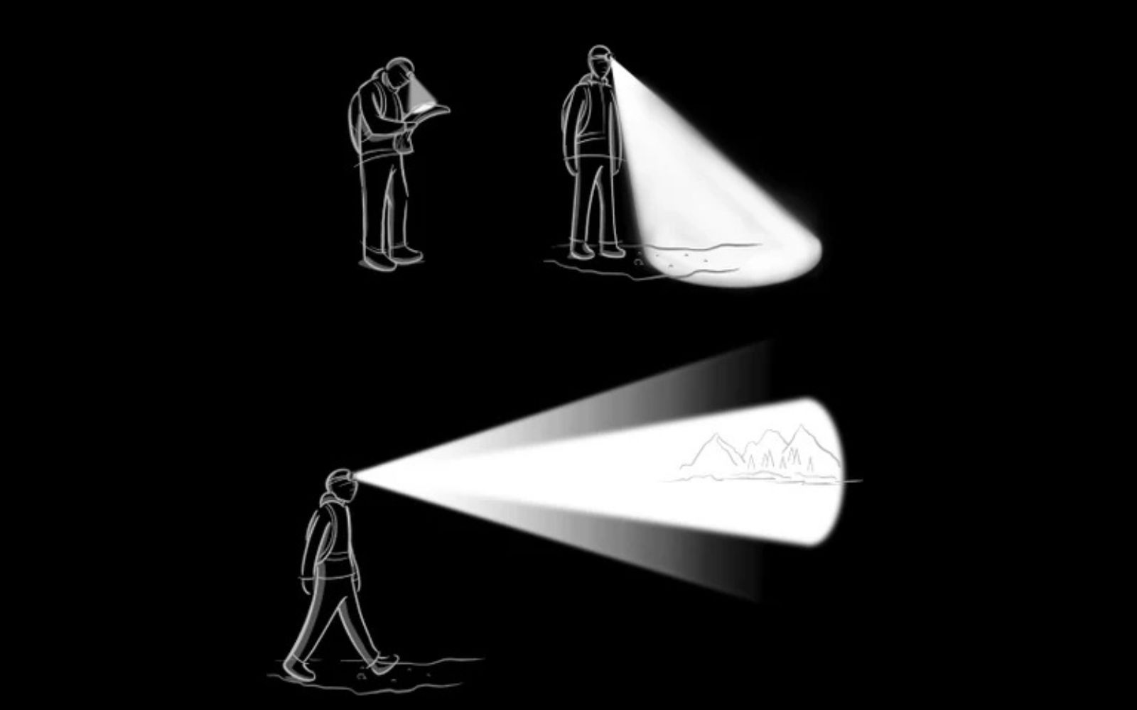 Grâce au commutateur de mise au point intégré, vous pouvez sélectionner le mode d'éclairage souhaité avant d'allumer la lampe. Cela vous permet de démarrer avec un éclairage optimal : faisceau haut, projecteur, lampe de lecture ou lumière rouge.