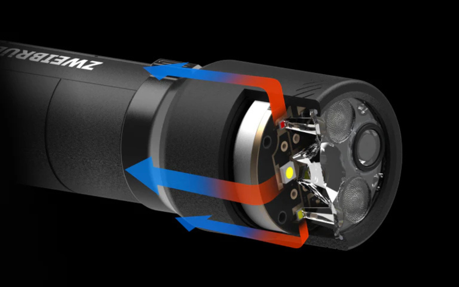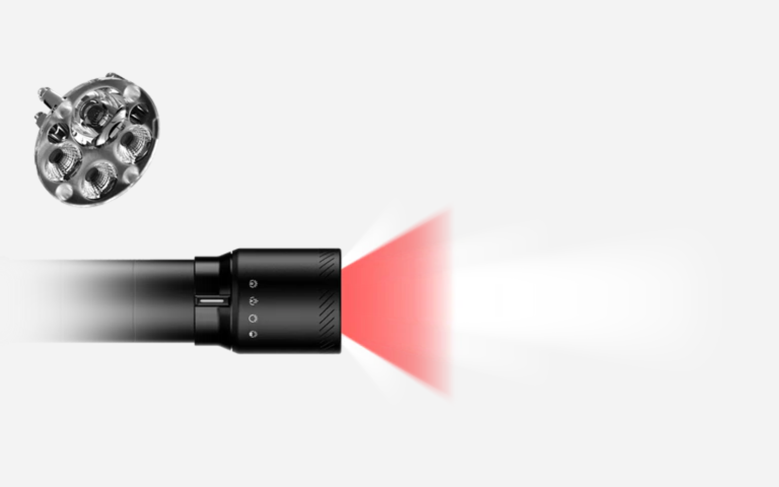 Le Focus Switch intégré vous permet de sélectionner le mode d'éclairage souhaité avant même d'allumer la lampe. Vous bénéficiez ainsi immédiatement d'un éclairage optimal : lumière longue portée, lumière large faisceau, lumière de lecture ou lumière rouge.