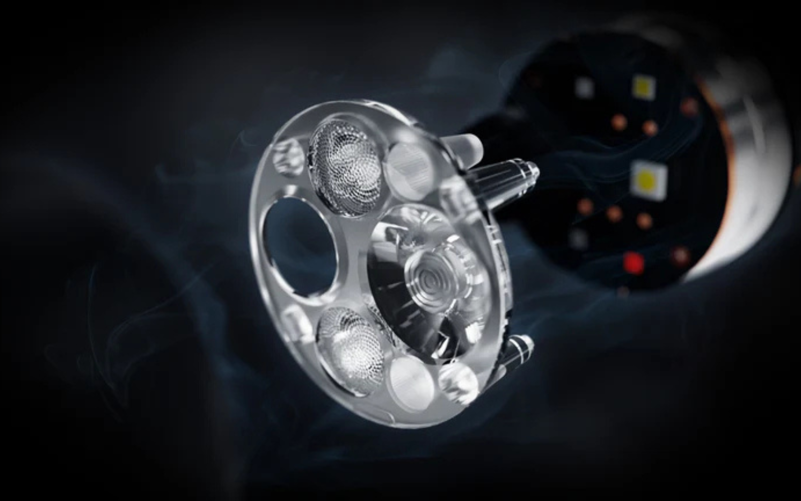 La technologie innovante MOT (Multiple Optic Technology) permet de passer numériquement de la pleine puissance, au faisceau large, à la lumière de lecture et à la lumière rouge sans aucune pièce mobile.